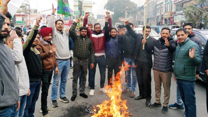 देहरादून। BJP is working to demolish constitutional institutions चण्डीगढ में भाजपा सरकार की और से साजिश के तहत असंवेधानिक तरीके से मेयर नामित किए जाने पर देहरादून स्थित एस्लेहॉल चौक पर बुधवार को जिला देहरादून युवा कांग्रेस की और से पुतला दहन किया गया।