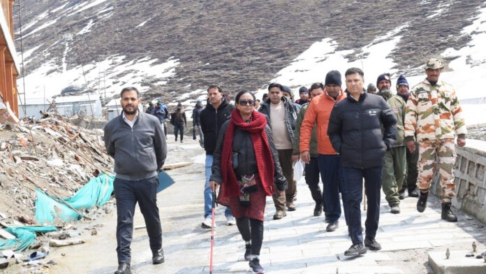 केदारनाथ में यात्रा तैयारियों का जायजा लेते मुख्य सचिव।