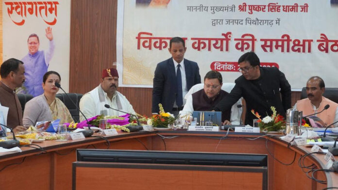 पिथौरागढ़/देहरादून। मुख्यमंत्री पुष्कर सिंह धामी ने पिथौरागढ़ में जिला कार्यालय सभागार में विभागीय अधिकारियों के साथ समीक्षा बैठक के दौरान विभागों द्वारा किए जा रहे विभिन्न कार्यों की जानकारी ली। मुख्यमंत्री ने निर्माणाधीन मेडिकल कॉलेज के निर्माण प्रगति की समीक्षा करते हुए निर्माण कार्यों में तेजी लाने के निर्देश दिए।