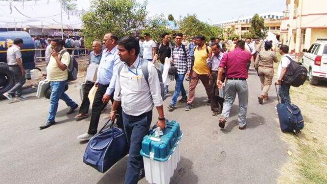 पोलिंग पार्टियां अपने गंतव्य को रवाना होते हुए।